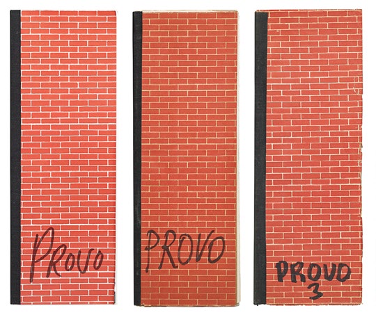 En el corazón de Provo está la noción de la ciudad como espacio gráfico. Las revistas se vendían en las calles, los carteles se pegaban en las paredes, las performances ("happenings") tenían lugar en las plazas públicas (y alrededor de determinadas estatuas y monumentos) (...) Mientras tanto, la imprenta (ilegal) de Provo tenía que ser trasladada constantemente, de un lugar a otro, porque siempre existía el peligro de confiscación. Así que la propia imprenta se desplazaba constantemente por la ciudad, como los Provos lo hacían por las calles de Ámsterdam.