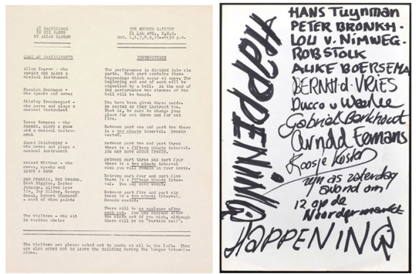 Convocatoria e instrucciones para 18 Happenings in Six Parts. Allan Kaprow, 1959. Convocatoria para un happening en Noordermarkt. Provo 1966