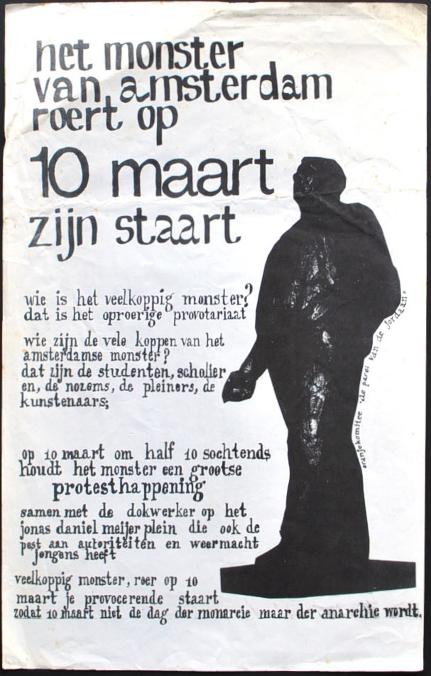Cartel de Provo convocando a un happening de protesta el 10 de marzo de 1966.