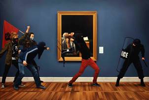 Imagen cedida por el artistaEn este sentido, como se señala en Ways of seeing, obra coordinada por John Berger (1972), desde que se toma una instantánea fotográfica a una pintura, el carácter de objeto único de la misma desaparece, y que su significado se expande. Garraza opera en dicha resignificación. Y es que tal y como apunta John Berger “The art of the past no longer exist as it once did. Its authority is lost. In its place there is a language of images. What matters now is who uses that language for what purpose»¹ (Berger et al. [1972] 1977, 33). A su vez, podemos establecer conexiones con los conceptos de 'reproducción', 'autenticidad' y 'aura' tal y como los concibió Walter Benjamin (1939). Con todo, aunque no haya duda de que las obras creadas por Garraza son bien distintas a las originales, consiguen generar un innegable impacto y sensación de familiaridad en el espectador.