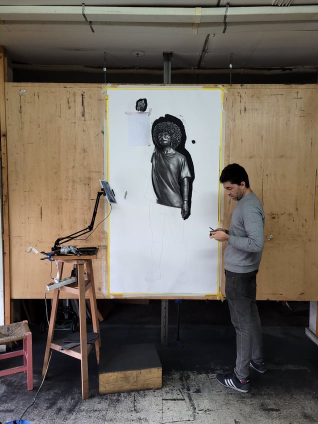 Como posteriormente podremos leer en la entrevista, en su último proyecto ha incorporado nuevas metodologías de trabajo que le permiten enriquecer el trabajo previo al acto de dibujar y pintar, pudiendo personalizar al máximo las referencias que va a emplear. De igual manera, estos nuevos procesos tecnológicos le han brindado la posibilidad de llevar el boceto digital al terreno de la escultura.