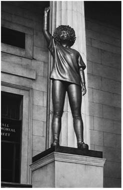 K.G: Es una serie llamada Nuevo Monumentalismo. Básicamente, es una reflexión acerca del poder y de la función del monumento público en nuestra realidad paisajística y urbana. Reflexiono sobre cómo eso no sólo influye en nuestra vida diaria, en nuestro deambular por la ciudad, sino también en las construcciones ideológicas sobre cómo se representan las figuras de autoridad y de poder. Tiene mucho que ver con la estatuaria del siglo XIX, ya que hay que tener en cuenta que la escultura pública funcionó como un elemento de propaganda muy importante y que ayudó en la construcción de la idea de estado-nación.