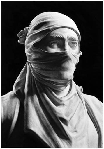 Imagen cedida por el artistaEn muchas de sus obras se hacen alusiones directas a obras existentes y, en otras, se apropia de diversos elementos como los visuales, compositivos y procedimentales de siglos anteriores. No obstante, una mirada atenta a sus piezas desvela que Garraza no parte de las obras originales, sino que trabaja a partir de una información superficial que le brindan las fotografías de las mismas, y que con posterioridad, él mismo también edita. Cuando el autor hace una cita a una obra ya existente, vemos que las pinceladas, veladuras, transparencias, empastes o, incluso el mármol de las esculturas, son simulados y reinterpretados; en muchas ocasiones con una técnica completamente distinta como puede ser el carbón comprimido. Esto nos indica que no existe la voluntad de crear una copia exacta de una pieza original, y que el propósito del artista es volver a construir y pensar una imagen a través de nuevas técnicas, formatos, iluminación y, en definitiva, dotarla de un nuevo significado.