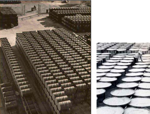 La desvinculación a la industria y la violencia de sus procesos se vuelve obvia hacia los 80’, donde las artistas dejan al lado lo íntimo y realizan macro intervenciones que revolucionan los escenarios urbanos. Betsy Damon, -caminando cubierta de sacos de harina rotos en «7000 Year old woman» (1977)- crea el «Living water garden» en Chengdu, una macroestructura con forma de pez –signo de regeneración en la cultura china- que desvía y purifica el agua altamente contaminada de la zona hasta hacerla potable. Un año después, Betty Beaumont construye en «Ocean landmark» (1978), un arrecife en medio del mar con bloques hechos de 500 toneladas de cenizas de carbón, y en «Wheatfields-A confrontation» (1982), Agnes Denes planta un campo de trigo en un vertedero de 10 hectáreas de la ciudad de Nueva York. El arte se convierte en un catalizador de prácticas abusivas, pero también en un generador de soluciones ante ellas que necesita para su funcionamiento de una conciencia colectiva.