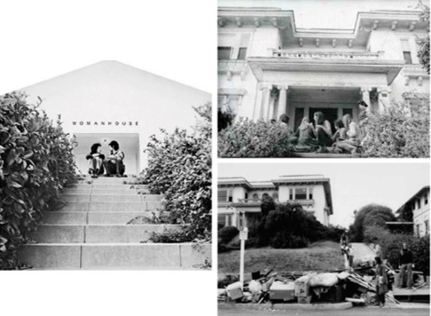 La revolución artística que acompañó las luchas por los derechos humanos y la anti-mercantilización de la tierra en los años 70’ alejó de forma intencionada sus prácticas de museos y otros espacios ‘formales’ por considerarlos parte de un sistema de sumisión capaz de decidir qué y qué no es el arte. Se destierra así el monocultivo cultural como concepto que limitaba los lugares y formas de expresión artística, ligados a las percepciones más clásicas Para estas artistas cualquier espacio era susceptible de contener experiencias artísticas y de despertar conciencias en su espectador-interventor. Así, una de las primeras exposiciones de arte feminista se ubicó en una casa en demolición en la Mariposa Street (Hollywood); la «Womanhouse» (1972). Fundada por Miriam Schaphiro junto a Judy Chicago, recibió más de 10.000 visitantes que caminaron por sus habitaciones, cada una convertida en un espacio performativo de denuncia contra las tradicionales categorías domésticas de la mujer (hija, madre y esposa). Esta reivindicación del derecho de igualdad lleva a un llamamiento ecológico a través de la intervención de espacios. La naturaleza entra en la mansión a través de elementos irreverentes –el caso de «Leaf room» de Ann Mills, «Crocheted environment» de Faith Wilding y «Personal environment» por Judy Huddleston– y el exterior se altera creando paisajes extraños -«Necco wafers» por Christine Rush o «Garden jungle» de Paula Longendyke-. Según las propias artistas esta mansión abandonó su percepción de hogar acomodado, surge así un espacio por y para el arte desde la reivindicación humana: las mujeres ya no eran seres domésticos ni domesticables, eran seres políticos y activos dentro de la comunidad.