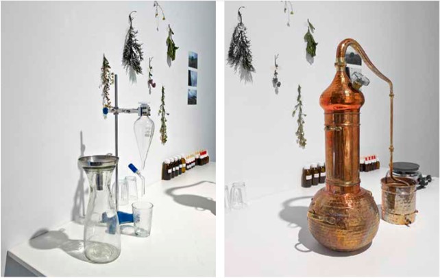 Todo este proceso de investigación artística se materializa en un ‘spla perfume’, debido a que el destilado resultante apenas generó esencia, pero sí una gran cantidad de hidrolato (agua de destilado). Este hecho, demuestra que a través de las muestras contaminadas recogidas afectan notablemente a su olor, pudiendo observar cómo este hecho modifica las condiciones naturales de los seres vivos. El ‘spla perfume’ está compuesto por 12 destilaciones de plantas procedentes de las 6 zonas más contaminadas de Coruña. Esta pieza evidencia los efectos de la industrialización capitalista y sus implicaciones para la vida: la imposibilidad de extraer la esencia de las plantas porque era inexistente debido a los altos índices de polución.