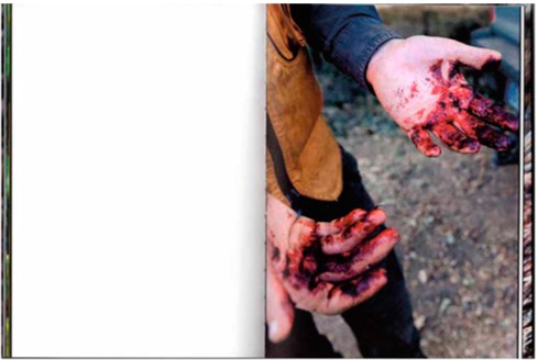 http://ruthmontielarias.comSi algo caracteriza la obra de Ruth Montiel, es su férreo compromiso ético en la defensa de los derechos de los animales, ante la crueldad del ser humano. Su particular contra-pedagogía se manifiesta a través de sus obras en formato de fotolibro. Explorando el vínculo de la artista como ser orgánico encontramos su fotolibro Bestiae (2017) fruto de la exploración de las interconexiones entre la explotación de los humanos y las personas así como las relaciones de crueldad y subordinación que las subyacen. Las imágenes de esta obra son parte de un proceso documental de la propia artista, que se infiltra durante dos años durante las temporadas en numerosas batidas de cazadores, prácticas tan salvajes como legales y arraigadas culturalmente. Participa en ellas a modo de observadora, pero también -e inevitablemente- desde el sentir de una vivencia propia. Manteniendo en mente que el problema no es con el individuo que dispara o hiere, sino con el sistema estructural que lo ampara y permite, su lente es observadora, no juzga y documenta en silencio, pero aun así es capaz de generar fricciones e incomodidad en la persona que lo contempla. Ni las heridas, ni la sangre, ni las armas… Nada de eso es el punto central de su obra; la dignidad juega un papel clave a la hora de retratar un acto tan directo e íntimo como la muerte. Una muerte que, según diría Segato (2018, 11), «es desritualizada, y nos hace pensar que deja apenas residuos en el lugar del difunto». La caza es un ritual, no de vida, sino de dominación, es un símbolo de poder premeditado, una institución que, como tal, se resistirá a morir, pero ninguna institución vive para siempre (Díaz Carmona 2017).