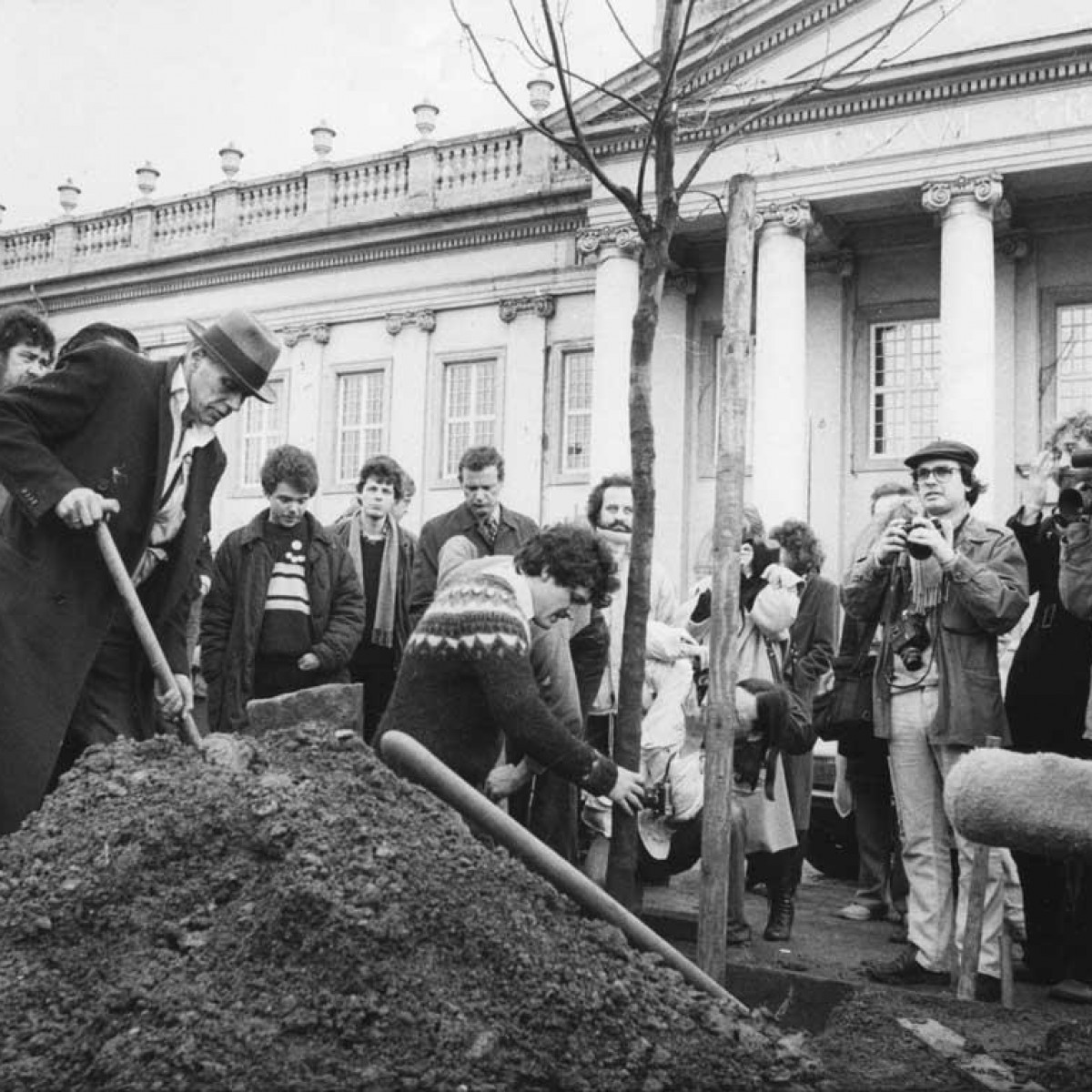 Por último, siempre existe la posibilidad de implementar acciones paralelas de compensación de carbono, que consiste en una reducción de la emisión de carbono planificada para mitigar los efectos de la emisión efectuada en otro lugar o actividad, por ejemplo, en un desplazamiento. Esto puede hacerse de manera individual o a través de proyectos de compensación de carbono en los que es posible colaborar. Además, las acciones paralelas también podrían llegar a formar parte del propio programa de una feria o evento de arte contemporáneo. Ejemplo paradigmático de una acción artística que resulta en una compensación de carbono en el contexto de un gran evento artístico es el proyecto «7.000 oaks» de Joseph Beuys. En la Documenta7 (1982) el artista plantó 7.000 árboles que cambiaron el aspecto visual de la ciudad y por otra parte tuvieron el efecto de equilibrar el posible impacto ecológico. Mediante sencillas estrategias como las mencionadas, ¿podremos generar puntos de encuentro más sostenibles?