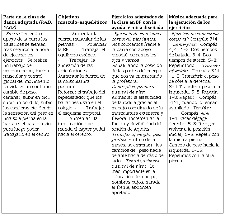 Nuestro trabajo está dirigido a demostrar que las clases de danza clásica adaptada en colaboración con la ayuda técnica desarrollada son un refuerzo óptimo para la rehabilitación convencional de los niños y adolescentes con problemas motores ayudándolos a mantener y aumentar la función muscular, la movilidad, y a mejorar su calidad de vida.