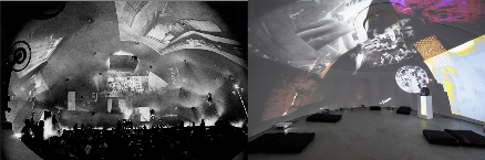 1963-1965, instalación inmersiva de VanDerBeek en New York. A la derecha, otra versión para un formato expositivo actualizado.