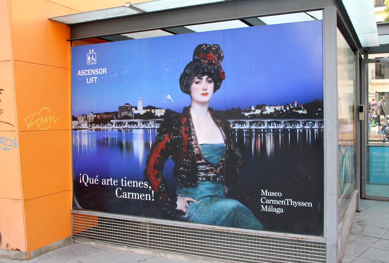 Sevilla tiene a Carmen y Málaga tiene a Carmen Thyssen. La campaña publicitaria ¡Qué arte tienes Carmen! (fig. 10) que el pasado mes de enero puso en marcha el Museo Carmen Thyssen integra obras de la Colección Carmen Thyssen con lugares emblemáticos de la ciudad: