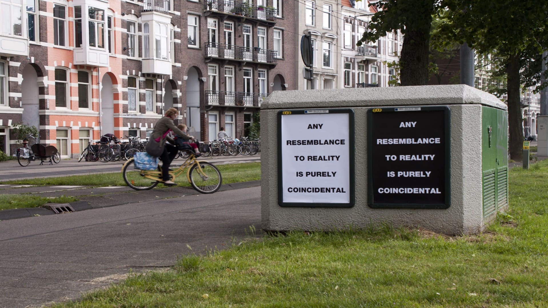 Cortesía de los artistasLos soportes publicitarios también son empleados desde otra perspectiva: mediante pegadas de carteles o inserciones sin permiso en estos contextos de publicidad exterior. «Menos es menos» (Noaz, 2013), «Estado asesino, libertad para los muertos» (Democracia, 2010), «Acciones urbanas absurdas» (Left Hand Rotation, 2009-2013), «You are a commodity» (PSJM y Marc Bijl, 2010) o «Gentrification» (DosJotas, 2015) se inscriben en esta línea. En «Any resemblance to reality» (Ámsterdam y Nueva York, 2012-2014), DosJotas se introduce en espacios publicitarios para lanzar sus contracampañas, donde anunciaba: «cualquier parecido con la realidad es pura coincidencia» (fig. 6). Estos mensajes sustituyen por un tiempo los anuncios de las calles para invitarnos a reflexionar sobre cuestiones ligadas a escenarios colectivos y a nuestro contexto más próximo8.