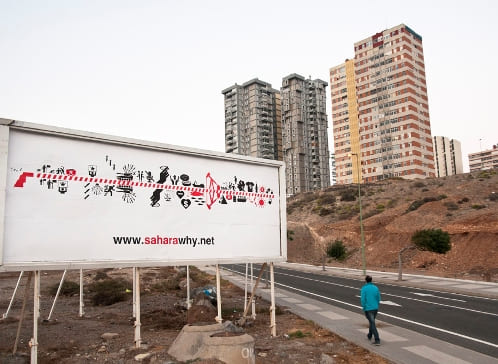 Cortesía del artistaEstas inserciones son muy frecuentes en la práctica artística de Rogelio López Cuenca. En «Saharawhy» (2012), junto a Elo Vega, vuelven a emplear procedimientos propios de la industria publicitaria (fig. 5). García Andújar, en «Not found 1000 casos de estudio» (2014), inserta mensajes de error informáticos en lugares destinados a mensajes comerciales; PSJM, con «Capitalismo D.E.P.» (2009), se introduce en las marquesinas de autobuses de la ciudad de Cuenca en el marco del Festival Ingráfica, del mismo modo que lo hacen con su campaña Marx® (2008) en los mupis de las calles circundantes al museo Laboral de Gijón y el Centro Atlántico de Arte Moderno de Las Palmas de Gran Canaria. El colectivo Democracia, en «Subtextos» (2009-2010) y «Sin Estado» (2009), vuelven a introducirse en estos contextos, siendo una práctica muy frecuente para muchos de estos creadores que conciben parte de su producción artística como una obra para mostrarse en el exterior del espacio habitual de exhibición artística.