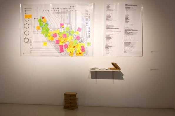 Las diferentes formas de presentación que va adquiriendo el proyecto profundizan paulatinamente en la investigación artística interdisciplinar hibridando distintas inquietudes dentro de sus posibilidades plásticas a través de formatos estrechamente ligados a la instalación y que paulatinamente se expanden a través de la inclusión de cartografías o mapas relacionales que permiten un mayor análisis sobre las características del contexto socio-cultural que envuelve el trabajo mencionado.