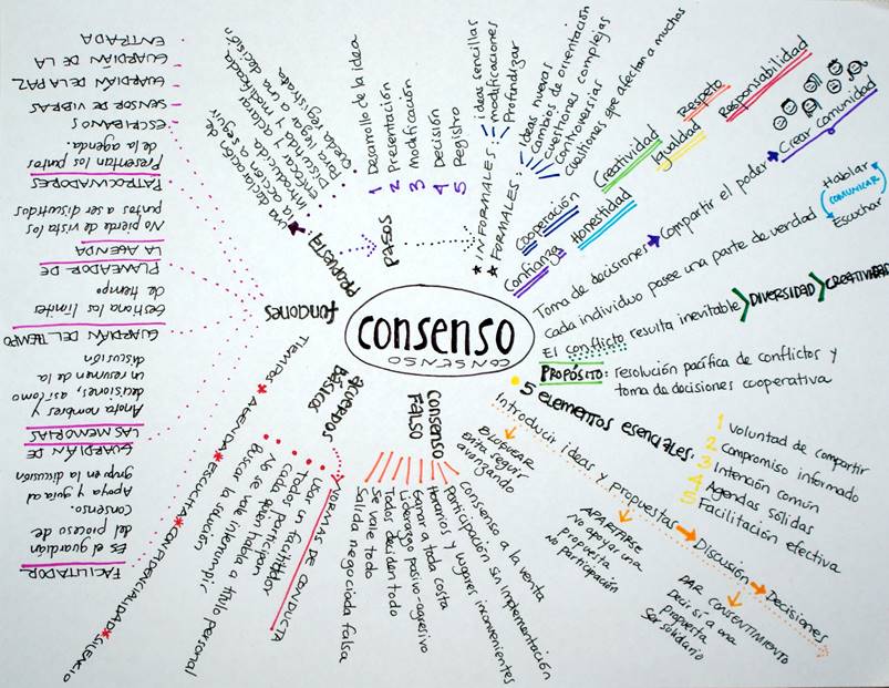 En las comunidades que genera la red todavía existe cierta libertad que al sistema le es difícil controlar. Los usuarios que realizan proyectos artísticos de forma colectiva o que se valen de los foros de conocimiento on-line para su ejecución, han emulado herramientas digitales desarrolladas en un primer momento para la toma de decisiones a nivel político. En ocasiones para que esta democratización sea viable al 100% surge el consenso aproximado o consenso práctico. Este término aparece en contraposición al consenso por unanimidad que se llevó a cabo en las asambleas del 15M en las plazas de toda España, donde se puso en práctica un modelo 'cadena', que por definición es un modelo anti-red. A pesar de que el activismo que se venía desarrollando en la red saltó a la calle de una forma masiva con las acampadas realizadas en 2011, es curioso comprobar como existe una contraposición entre el modelo de asamblea frente al modelo de red-laboratorio. Éste modelo es algo que han venido trabajando los hackers durante mucho tiempo. Esta comunidad ha explorado muchísimo sobre la horizontalidad en la toma de decisiones y la ejecución de propuestas, tanto es así que en ocasiones han llegado a adoptar fórmulas que no son totalmente horizontales simplemente por una cuestión de eficacia. En estas comunidades existe la meritocracia y los denominados 'ancianos de la tribu': personas con experiencia que renuevan su aceptación mediante su aportación constante y contrastada por la propia comunidad. En muchas ocasiones la horizontalidad llevada a sus últimas consecuencias ralentiza y dificulta la realización de los proyectos. En este sentido la meritocracia y la democracia se entrelazan, potenciado la autorregulación y la autocensura dentro del colectivo. La red, por tanto, es el operador de posibilidad, las diferentes plataformas y espacios en Internet donde se potencian o desechan los resultados nos lleva la mirada hacia esas transformaciones. Internet aparece como algo vivo en transformación constante, los usuarios lo construyen dependiendo de las necesidades del momento.