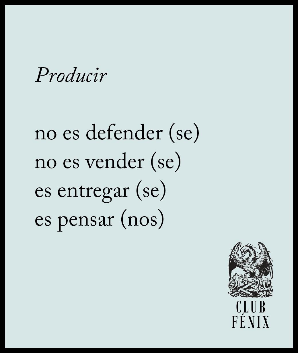No creemos en muchas cosas, pero tenemos la sospecha de que el abandono del anichamiento de la mirada ayudará a dejar al descubierto (a la intemperie, al desamparo) los temas de la obra. Para eso, y porque entendemos que a la vez que se reproducen los discursos sobre las obras, hay una imposibilidad fundante de comunicar aquello de lo que la obra trata, hemos convocado a personas de las más diversas áreas para que miren, miren, miren, piensen, piensen, piensen y hablen, hablen, hablen. Una devolución siempre en negativo —así el espíritu de Club Fénix—, una devolución centrada en indagar aquello que efectivamente no funciona, lo que queda fuera y debería entrar, lo que entra y debería salir, en definitiva, un mapa de un problema, un mapa del no.