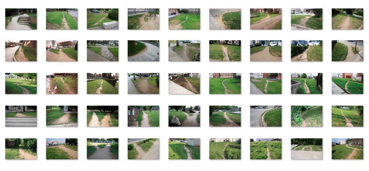 La meta es el fin al que se dirigen las acciones y los deseos. Tal vez, por este motivo, sea más adecuado hablar de ello que de conclusiones. En el camino, la investigación y creación van de la mano, entendiendo la docencia como el mostrar y hacer comprender este proyecto. En nuestro caso, el proceso creativo —y también el docente— radican en el acto de caminar. Paralelamente, medios como el mapeado o la fotografía no son más que resultados tangibles del paseo y la mirada atenta, de cuyo resultado surge la obra. Más concretamente, la criatura —el ‘camino del deseo’— digamos, ya está ahí, solo se trata de investigar el motivo de su creación y percibirlo en conjunto a la manera de una cartografía que aglutine estas «manifestaciones de un pragmatismo individual que deviene colectivo a través, una vez más, de la acumulación asíncrona de acciones» (Pis Marcos 2022, 192).