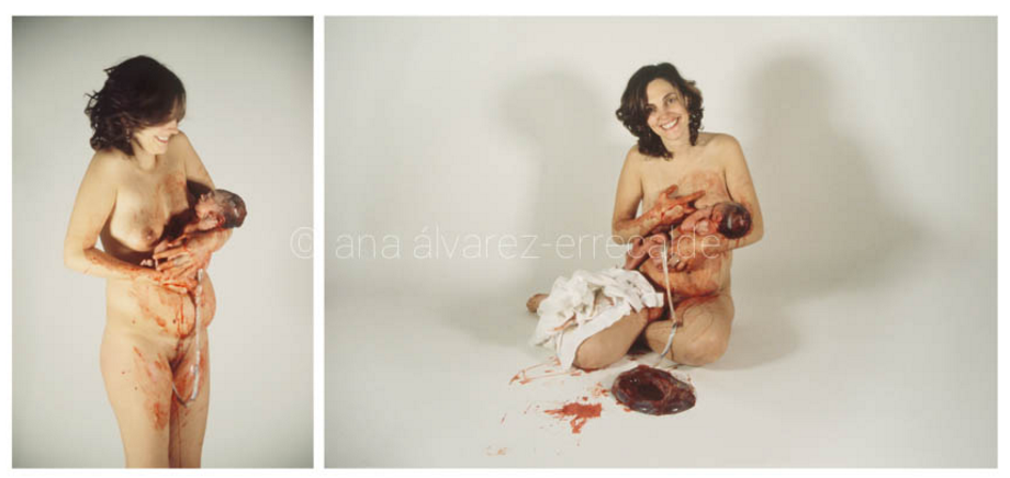 Con este autorretrato documental (sin photoshop ni técnicas de manipulación de la imagen) en parto quiero desafiar las maternidades 'de película que el cine, la publicidad y la historia del arte enseñan reforzando el estereotipo surgido de las fantasías heterosexuales masculinas que responde a la dualidad madre / puta.