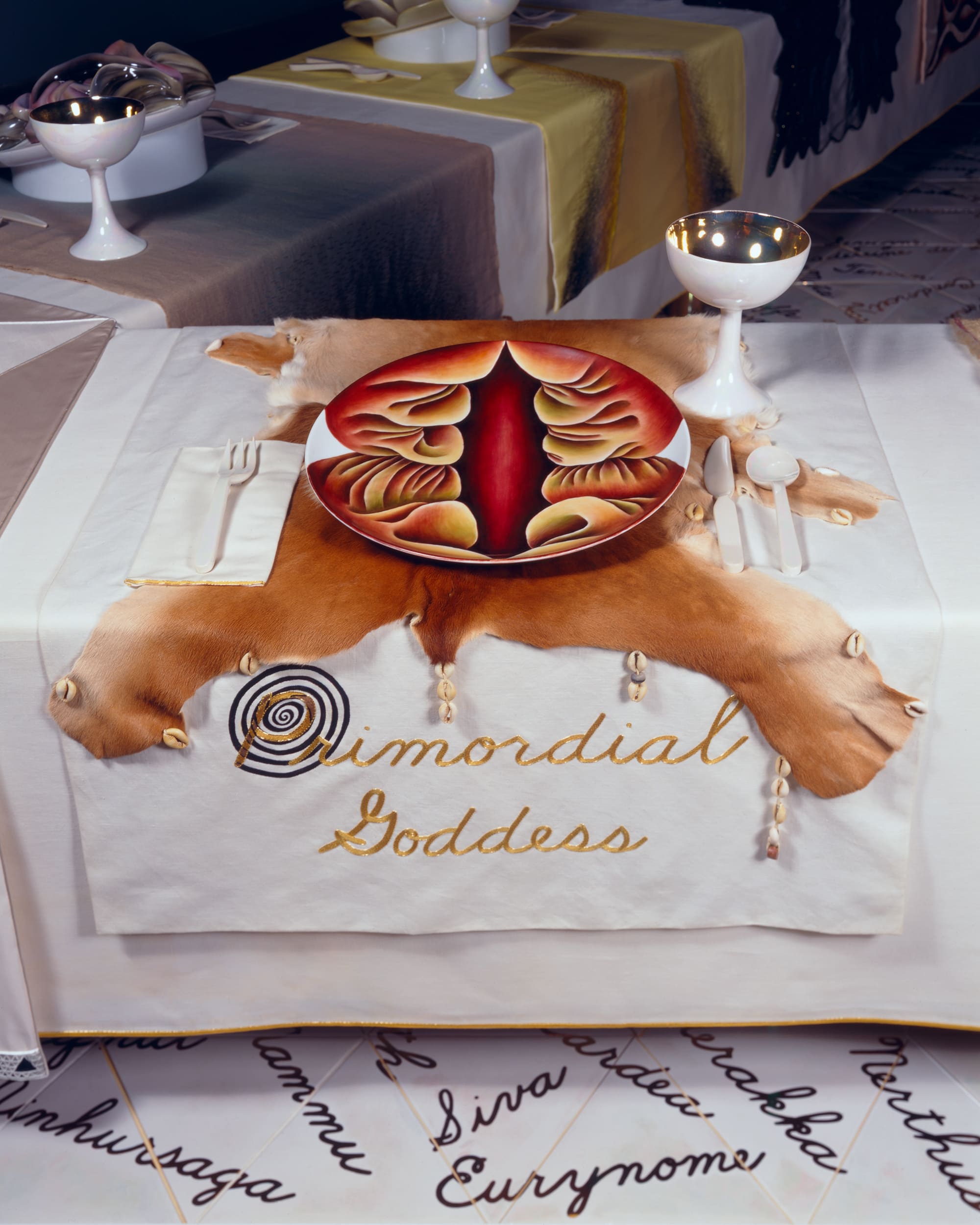 Remitiéndonos de nuevo al ejemplo de Judy Chicago, contamos con la obra «The dinner party» en la que recuerda a aquellas mujeres cuyos logros han quedado silenciados por su condición de género y que a modo de invitación, realiza una reunión de todas ellas, criticando el anonimato al que se les ha confinado, así como una exaltación de su papel para la historia. La diosa supone una muestra de este rasgo histórico, ya que es ejemplo inequívoco de cómo el vestigio de una sociedad primigenia queda apartada por su estrecha relación con la mujer, y por tanto, su elección, la mejor estrategia a modo de crítica que expone cómo, desde antiguo, se lleva realizando este acto de ocultación.