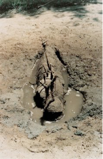 Marina Abramovic o Ana Mendieta, realizaron performances registradas fotográficamente, también en un ámbito que podríamos denominar cerámico. La cerámica es una disciplina con sus propias normas, útiles, métodos y herramientas, a la vez que una práctica histórica donde el hombre utiliza la tierra para construir sus artefactos tecnológicos. La arcilla es tierra extraída y procesada. Al trabajar con la tierra o la cerámica desde el cuerpo, se cuestionan aspectos culturales que naturalizan hábitos aprendidos y miméticos. Al hacerlo en un espacio natural como Ana Men-dieta, se toman prestadas, cuestionan y pervierten las ligazones culturales entre la naturaleza y la feminidad.