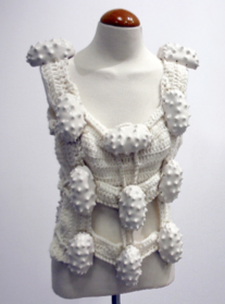 Mi práctica artística interdisciplinar en cerámica aúna piezas artísticas que he decidido llamar artefactos, productos que son consecuencia directa de sistemas de necesidades sociales y culturales. Los empleo como maneras de extender los límites materiales del cuerpo. Algunos de mis trabajos se centran en la creación plástica de piezas, que plantean los problemas de la construcción de la identidad por medio de imágenes corporales. Entretejo nociones opuestas como fragilidad-agresividad, femenino-masculino, industrial-manual, repetición-expresividad, eterno-efímero.