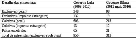 Os dados demonstram que, mesmo com uso de estratégias similares na comunicação, os dois gestores utilizaram o recurso de forma diferente, sendo que a média de relacionamento direto de Dilma com a imprensa ficou aquém da de Lula, inclusive com a imprensa estrangeira, o que aparenta pouca preocupação da ex-presidente com o relacionamento internacional por meio da mídia. Em anos como 2014, não há sequer um registro de entrevista coletiva ou exclusiva específica para a imprensa estrangeira. Dilma focou seus esforços para a mídia doméstica uma vez que se tratou de um ano eleitoral.