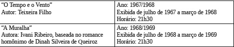 Quanto ao nosso objeto, as telenovelas, há no site “Memória Globo” um banco de dados com o registro das telenovelas exibidas pela Rede Globo, desde 1965, ano de sua primeira produção, até 2016. Neste site, temos acesso às sinopses, fotos, vídeos, galeria de personagens, informações sobre figurino, caracterização, cenografia, curiosidades, trilha sonora, cenas marcantes e ficha técnica.