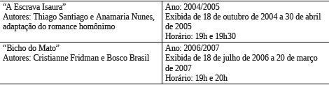 Na pesquisa bibliográfica, nossa principal referência foi Malcher (2010), que apresenta uma consistente pesquisa sobre o papel da teledramaturgia na trajetória da televisão aberta no Brasil. Na parte final, há um relatório sobre a programação teledramatúrgica veiculada, entre os anos de 1950 a 2005, nas principais emissoras brasileiras.