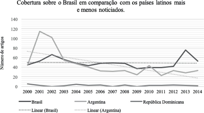 Primeiramente, listamos todas as notícias relacionadas ao Brasil que foram publicadas entre janeiro de 2000 e dezembro de 2014, somando 15 anos de análise. Todos os artigos foram categorizados em conformidade com o título do periódico, número de palavras e data de publicação (3.731 artigos). As notícias publicadas nos portais SZ.de, FAZ.NET, taz.de e Der Spiegel Online não foram consideradas. Isso porque um estudo sobre jornais impressos de 18 países europeus revelou que 70% dos artigos publicados em suas respectivas plataformas online eram provenientes da versão impressa (WURFF, 2008).