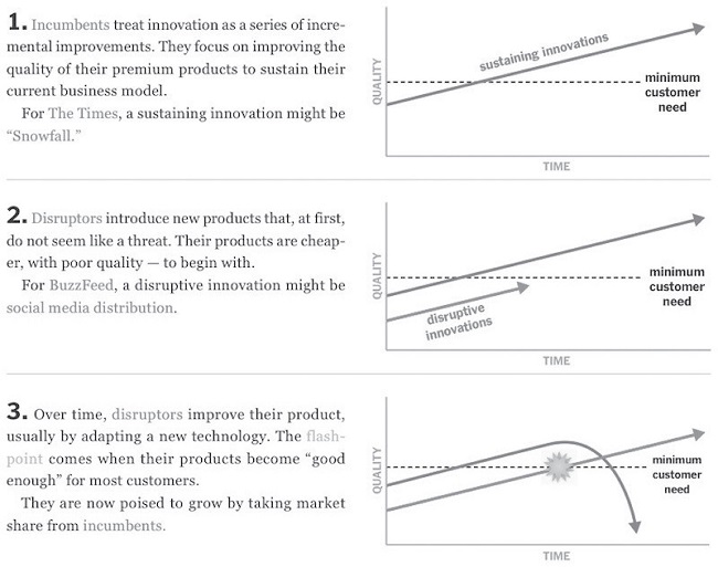 Em março de 2014, o relatório “Innovation”, documento confidencial do NYT divulgado (leaked) na internet pelo BuzzFeed News norte-americano, analisava e fazia uma autocrítica do desempenho da organização jornalística focado em grande parte na sua redação. Captar novos leitores por meio de um Jornalismo de qualidade norteia o documento, além de questões similares; o destaque e centralidade do relatório, assim como seu nome já evidencia, é o termo “inovação”, central, especialmente no que se refere a conteúdo noticioso. O já citado “Snow Fall” é considerado, no documento, um exemplo de “inovação sustentável” (Figura 6).