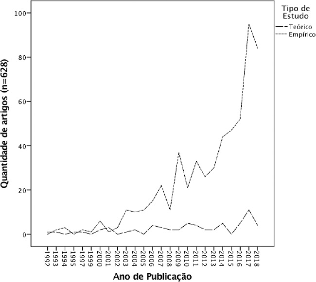 Apesar do leve aumento das publicações de pesquisas teóricas em alguns momentos, especialmente em anos como 2010, 2016, 2017 e 2018, há poucas mudanças se comparado às pesquisas empíricas. É importante mencionar, antes de finalizar esta discussão, que muitas revistas tendem a aceitar mais estudos empíricos, o que pode se refletir nos resultados, já que este trabalho tem como escopo de análise somente artigos de revistas. De toda forma, seguindo a proposição de Dow e Condit (2005), o ideal para as áreas seria o equilíbrio, demonstrando que pesquisas empíricas geram, além de resultados pontuais, um conjunto de questões que permite o desenho de novas teorias.
