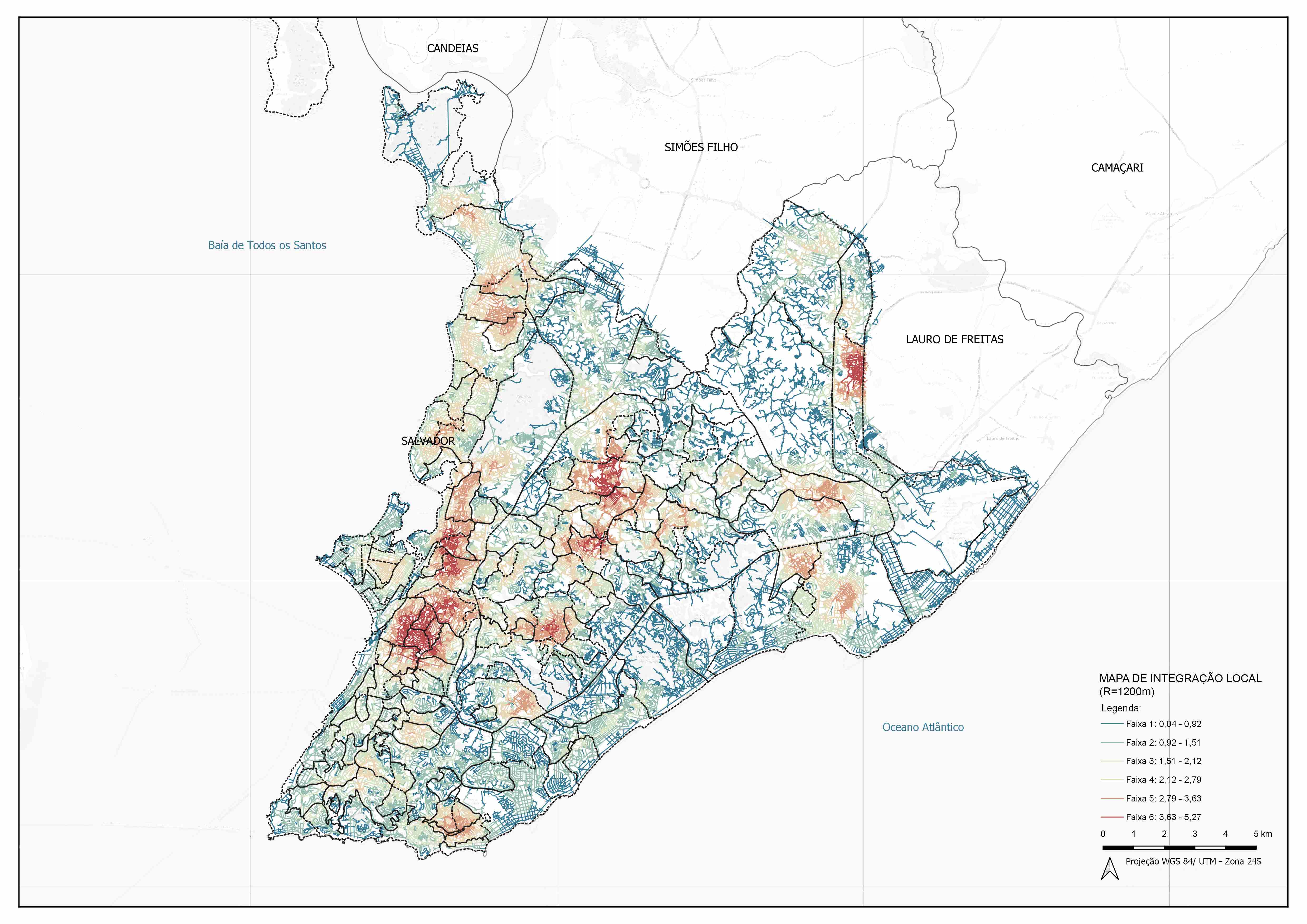 As zonas mais integradas no contexto local demonstram melhores condições para estruturar a dinâmica urbana, facilitando o acesso a equipamentos e atividades ali existentes. Em Salvador, os bairros que apresentam os valores mais altos de integração estão localizados nas proximidades do centro histórico, compreendendo bairros como Calçada e Lobato, assim como em outros bairros como Tancredo Neves, Castelo Branco, e Itinga, localizados na conurbação com Lauro de Freitas.