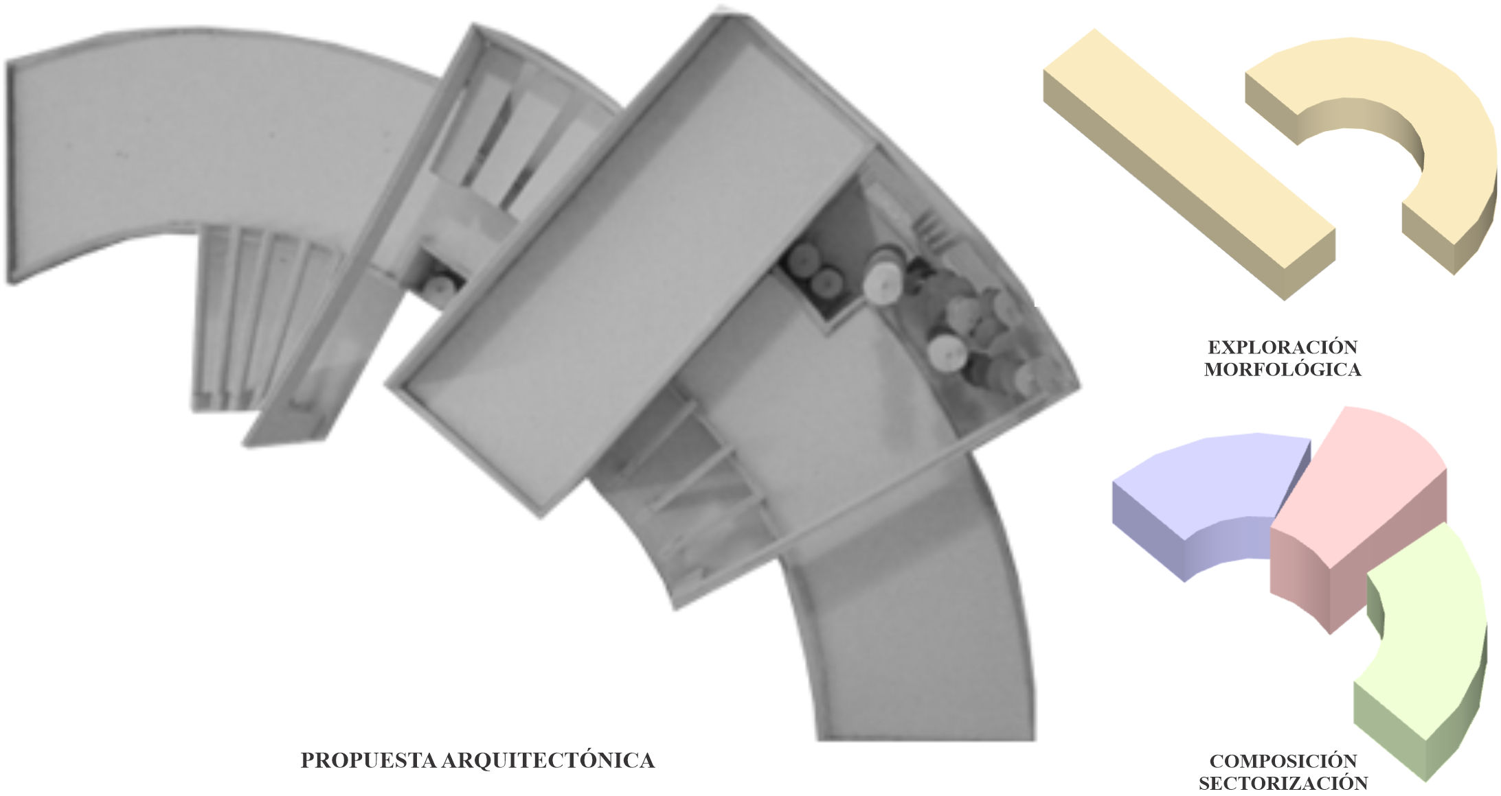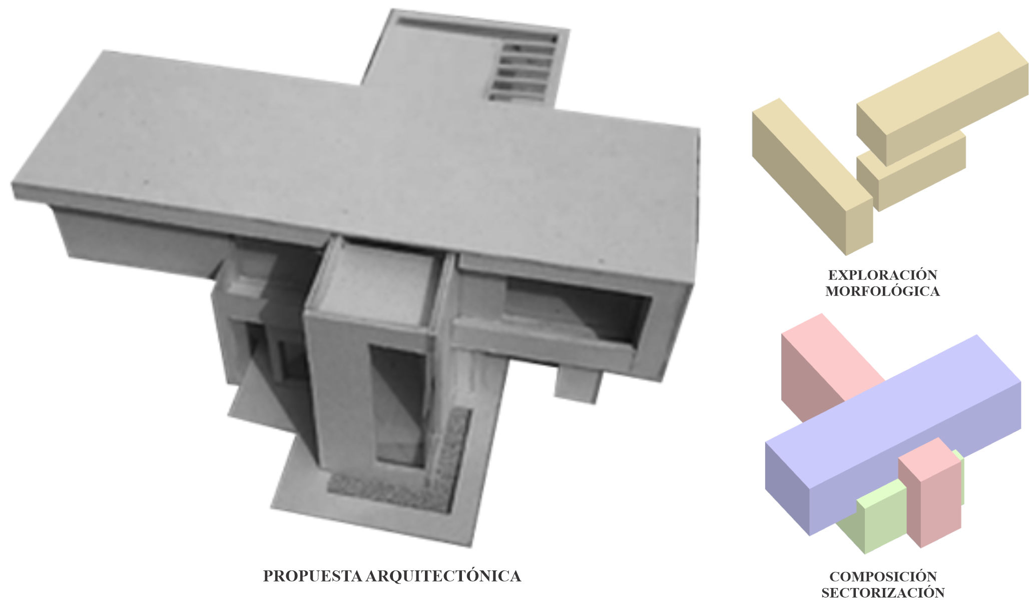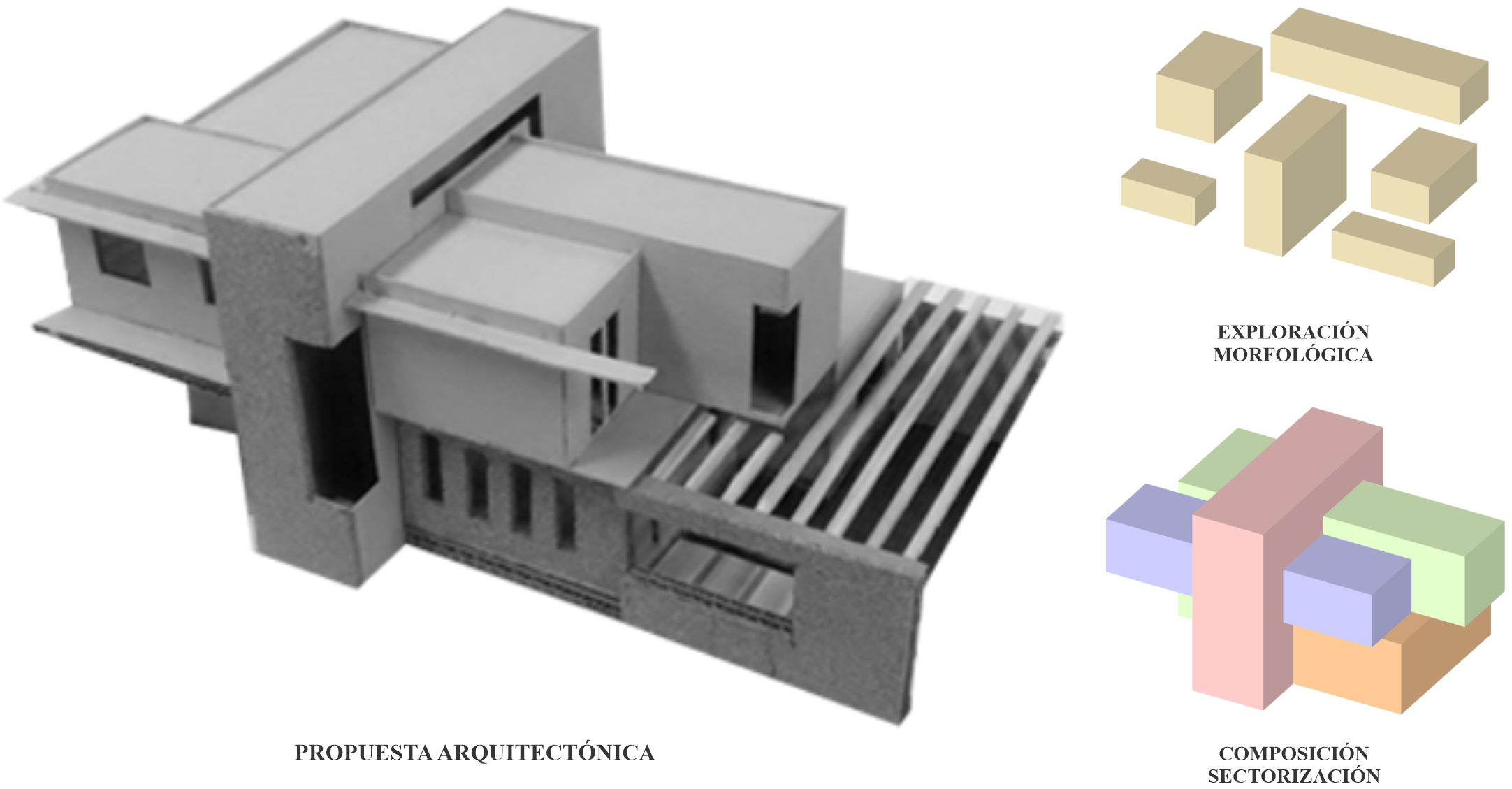 Idea generadora y elementos configurantes: la idea es una herramienta clave en el inicio del proyecto y puede fundamentar cualquier decisión que se tome durante el proceso creativo, desde la elección de la tipología de partido hasta la configuración volumétrica con los elementos geométricos del espacio. En esta etapa el estudiante hace uso de los datos obtenidos en la instancia anterior para dar nombre a su idea generadora y poder direccionar el proyecto bajo los criterios que de ella devengan.