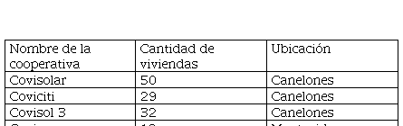 En la cooperativa Covisol 3, de los 32 núcleos familiares, se obtuvieron 25 respuestas al formulario, lo cual corresponde al 78 % del total de la muestra. En la cooperativa Coviciti, de los 29 núcleos familiares, se obtuvieron 17 respuestas al formulario, lo cual corresponde al 58 % del total de la muestra. En la cooperativa Covisolar, de los 50 núcleos familiares, se obtuvieron 29 respuestas al formulario, lo cual corresponde al 58 % del total de la muestra. Y en la cooperativa Coviru, de los 12 núcleos familiares, se obtuvieron 9 respuestas al formulario, lo cual corresponde al 75 % del total de la muestra.