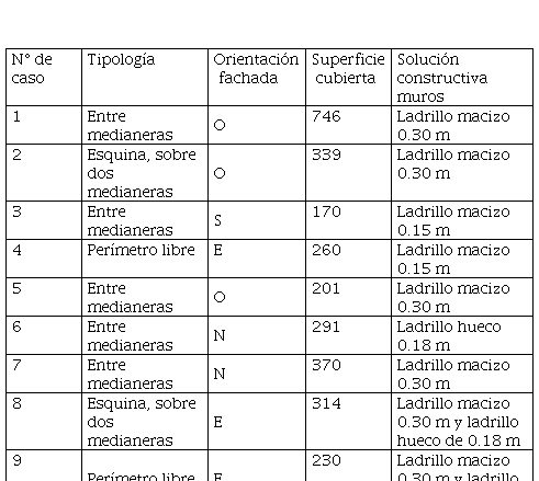 Lo que pretende este trabajo es encontrar relaciones entre el consumo energético y el comportamiento térmico de los edificios. Es por ello que se realizan dos análisis comparativos a partir de los datos obtenidos. En primera instancia, se comparan los valores de consumo energético con las principales características de emplazamiento, superficies, adyacencias de muros exteriores y materialización de los mismos. En segunda instancia, se contrastan los consumos con el porcentaje de horas en las que la temperatura supera los 32 °C y resulta inferior a 18 °C (dato facilitado por la fuente meteorológica local).