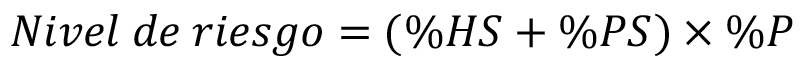 Donde: %HS = Porcentaje de solventes peligrosos del curso evaluado, %PS = Porcentaje de solventes problemáticos del curso evaluado y %P = Porcentaje de prácticas evaluadas