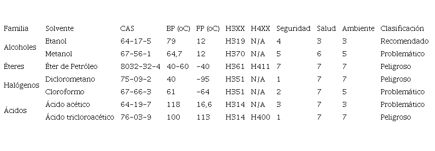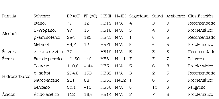Clasificación del riesgo químico de solventes orgánicos mediante la aplicación del método “CHEM21 selection guide of classical- and less classical-solvents”