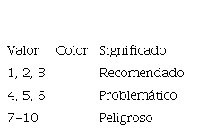 La escala utilizada por el método aplicado para los tres criterios (salud, seguridad y ambiente) oscila entre 1 y 10, representando el valor de 1 el menor riesgo y el valor de 10 el mayor riesgo (cuadros 2, 3 y 4).