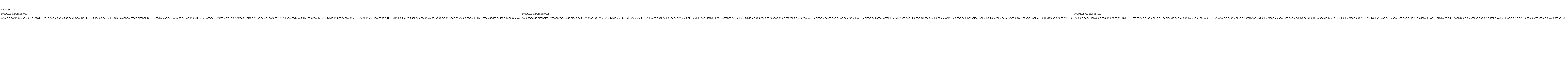 Cuadro 6. Prácticas de los cursos experimentales de Bioquímica, Química Orgánica I y II.