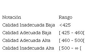 Transformación y selección de variables: Para que los algoritmos de machine learning puedan ser entrenados y probados se categorizó la variable que mide la calidad. Esta transformación redefine la naturaleza de la variable, pasando de una variable numérica continua, que fluctúa en un rango de 289 y 625 Newton, a una variable categórica compuesta de cuatro categorías como se muestra en el cuadro 3.