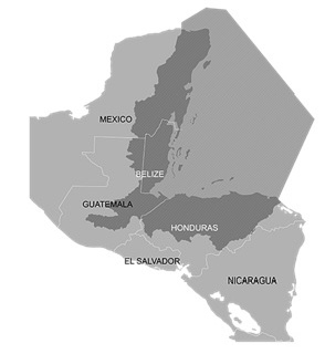 El Sistema Arrecifal Mesoamericano es un ecosistema de aproximadamente 1,000 km de longitud localizado en el mar Caribe (Figura 1). Inicia en Cabo Catoche, al norte de Quintana Roo, México, bordea las costas de Belice y Guatemala y finaliza en el complejo Islas de la Bahía/Cayos Cochinos en la costa norte de Honduras [11]. Estos arrecifes están particularmente bien desarrollados y es uno de los que contienen la más rica diversidad en el Gran Caribe [12].