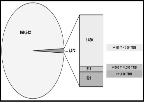 Si bien, hasta el momento se tienen registradas y matriculadas a nivel nacional (México) 172,214 embarcaciones (figura 3), de estas 162,642 son embarcaciones menores y medianas que miden entre los 12 a 24 metros, incluyen: lanchas, chalanes, turismo náutico, motos acuáticas, de carga, pasaje, pesqueros, los 2,572 son embarcaciones que fluctúan entre los 24 a mayores de 40 metros, que incluyen pesqueros, barcazas, turísticos, abastecedores y remolcadores, abastecedores, petroleros, gaseros, transbordadores, chalanes, que no realizan servicios de recreo y deportivas; principalmente navegación de altura y cabotaje [21].
