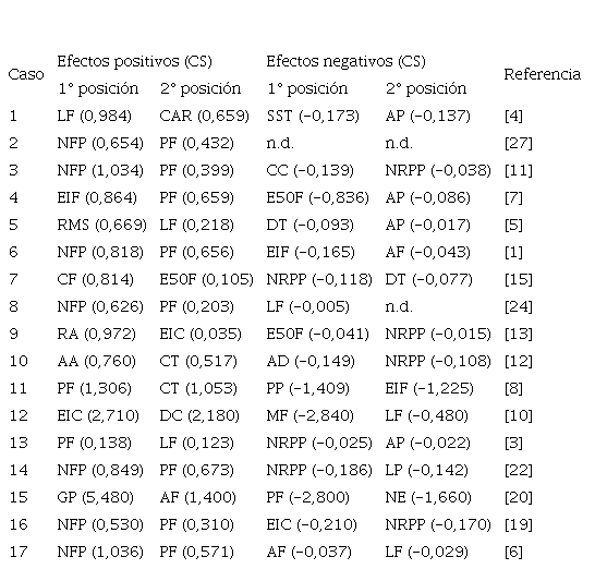 Otros efectos indirectos positivos sobre RC fueron ejercidos por AF (CS = 0,65) y GP (CS = 0,56), a través de PF; por PF (CS = 0,62) y GP (CS = 0,60), a través de AF; y por LF/AF (CS = 0,60), a través de LF.