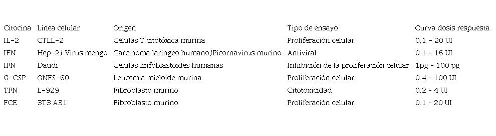Ensayos in vitro para cuantificar la actividad biológica de citocinas