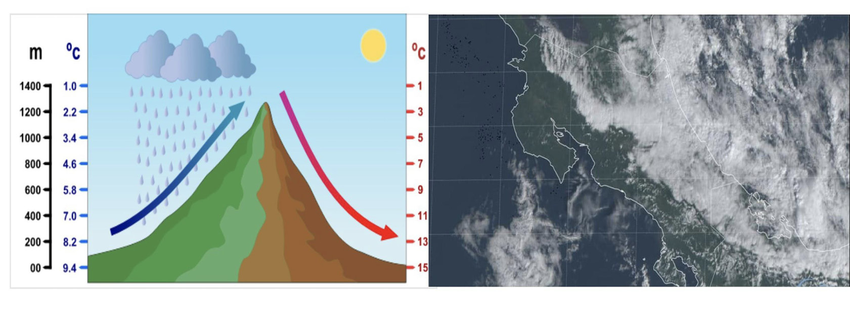 Figura 2. Efecto orográfico en la distribución de lluvias en el país. IMN, 2020.
