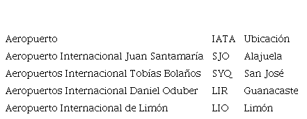 Adicionalmente, el país cuenta con 12 helipuertos autorizados, la mayoría privados distribuidos en San José (5), Puntarenas (3), Heredia (2), Limón (1), Alajuela (1). Es decir, en las provincias de Cartago y Guanacaste no hay helipuertos.