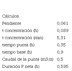 Para el hidrograma se procede a calcular las siguientes variables: