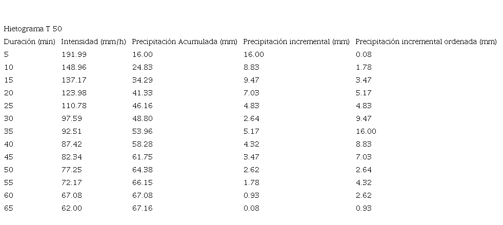 Figura 1. Hidrograma T= 50 años.