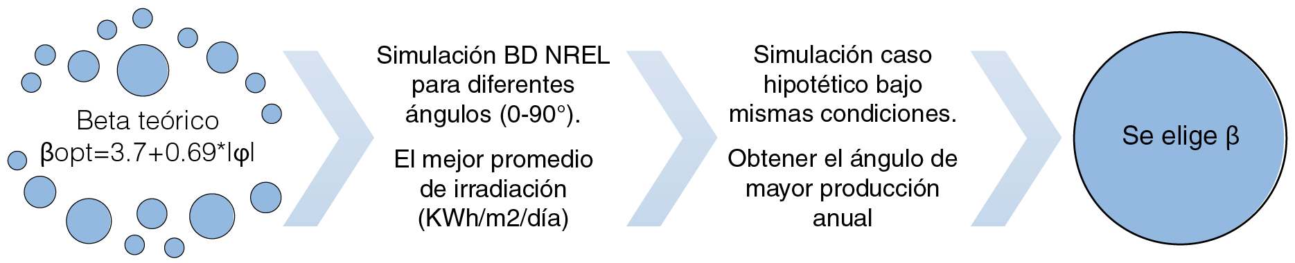 Figura 2. Procedimiento para determinación del ángulo de inclinación óptimo beta (β).
