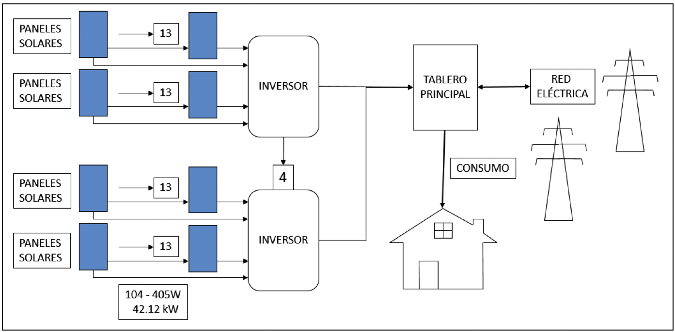 Figura 5. Esquema de solución para el sistema solar fotovoltaico On-Grid.